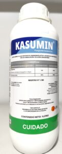 KASUMIN: protección rápida y confiable para tus cultivos. Con acción sistémica y efecto preventivo-curativo, penetra velozmente en la planta y mantiene su eficacia incluso frente a lluvias cercanas. Seguridad y rendimiento que aseguran cosechas sanas y productivas.
